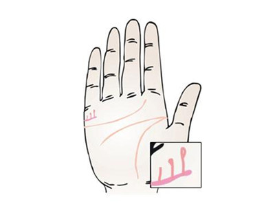 ③子女線起端有島紋代表其兒女年幼時(shí),身體較弱,常常患病。