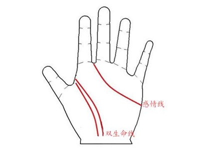 2、生命線有兩條,且感情線伸入食指中指間,生命力旺盛健康少病痛,事業(yè)上也多得他人的幫助,遇事總是能逢兇化吉,孕育出健康快樂的寶寶,先天就有很大的優(yōu)勢。而感情線尖端伸入食指中指間者,對待愛情很純潔,有服務(wù)他人的精神,看著孩子的品性發(fā)展,會教育處孝順循規(guī)蹈矩的孩子。